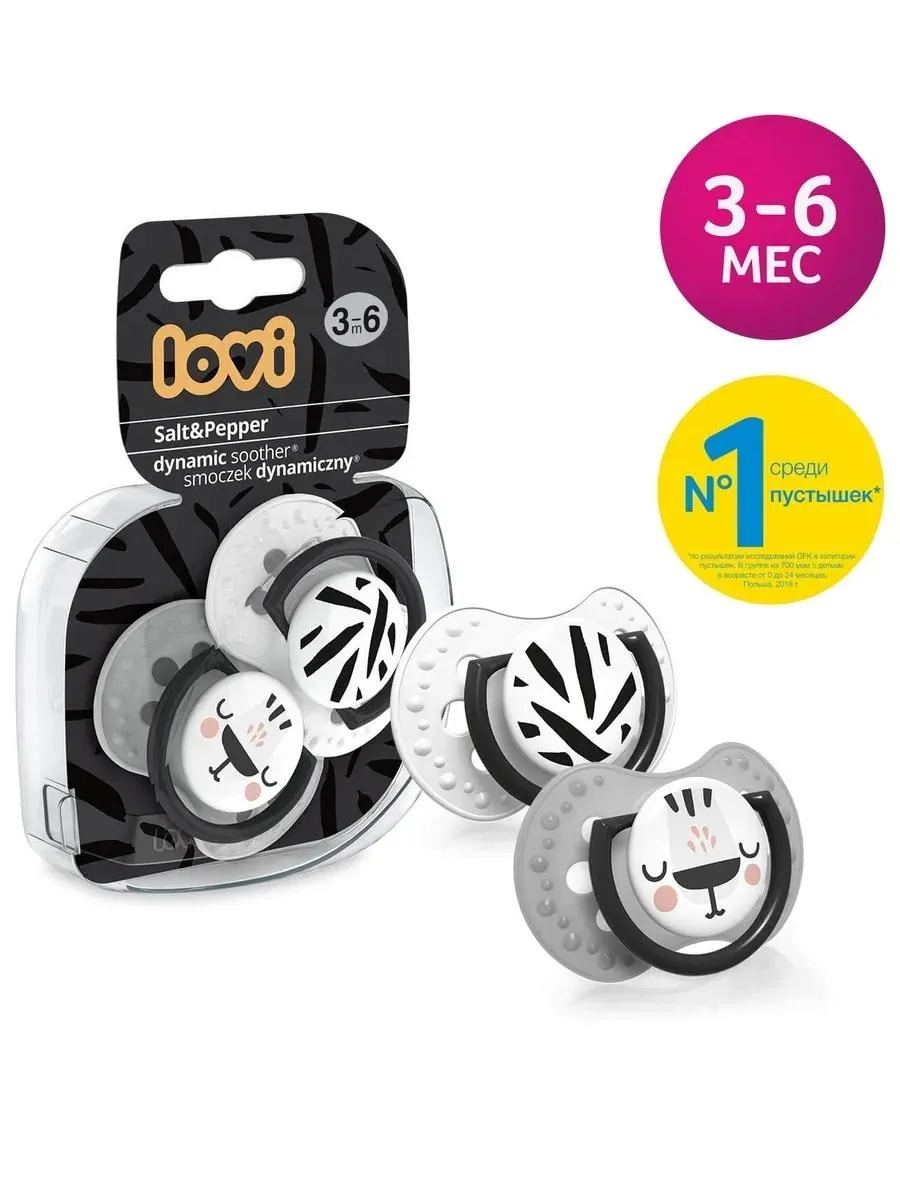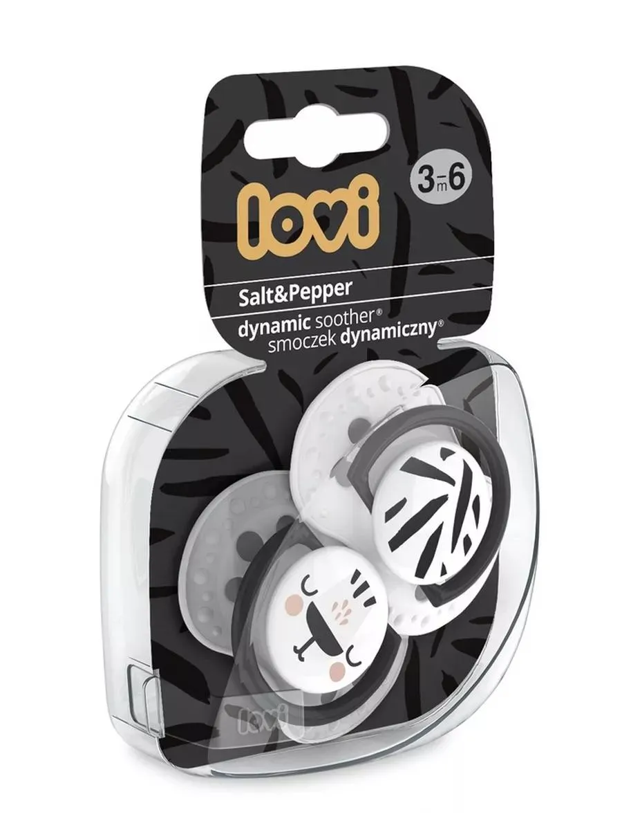 1 / 10Силиконовая соска-пустышка LOVI Salt&Pepper с уникальным дизайном и симметричной формой, обеспечивающая комфортные сосательные движения для ребенка. Подходит для детей от 3 до 6 месяцев.