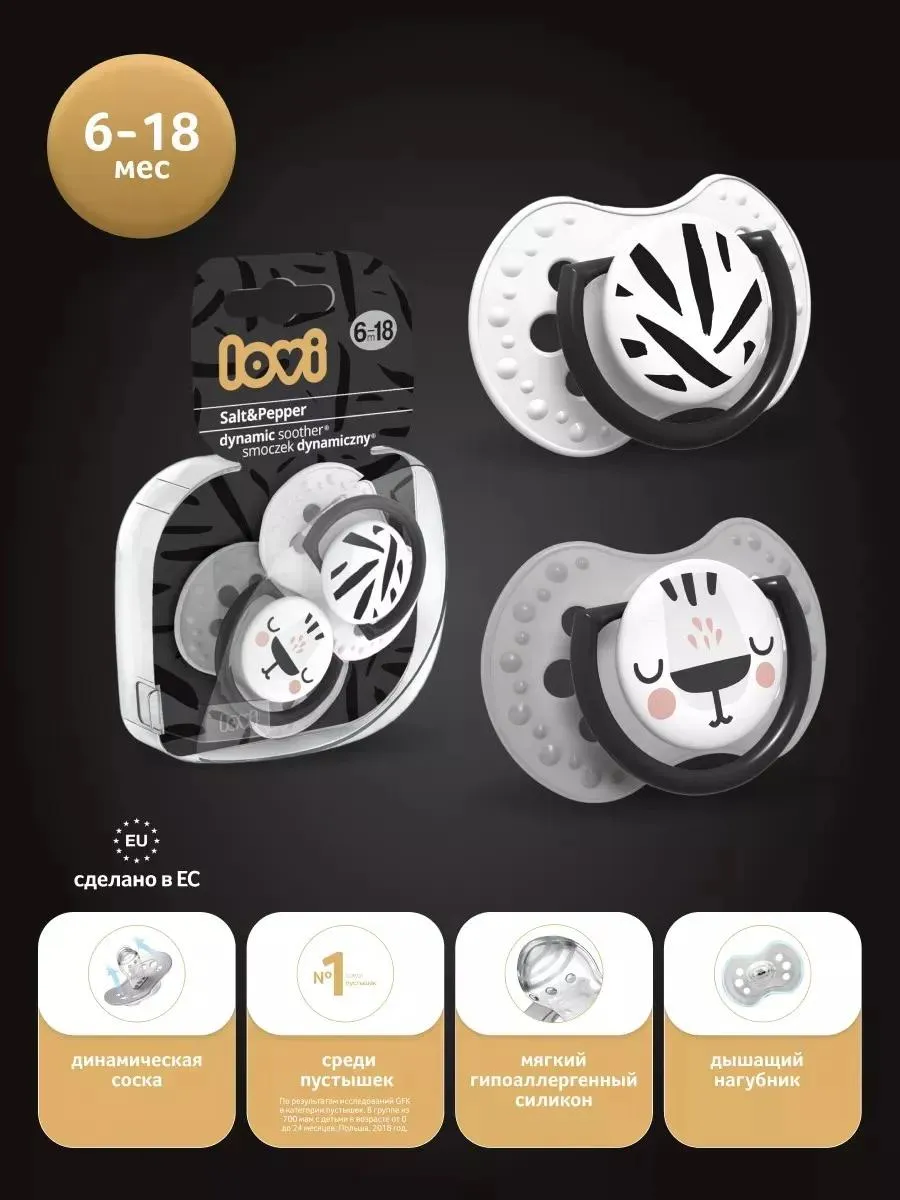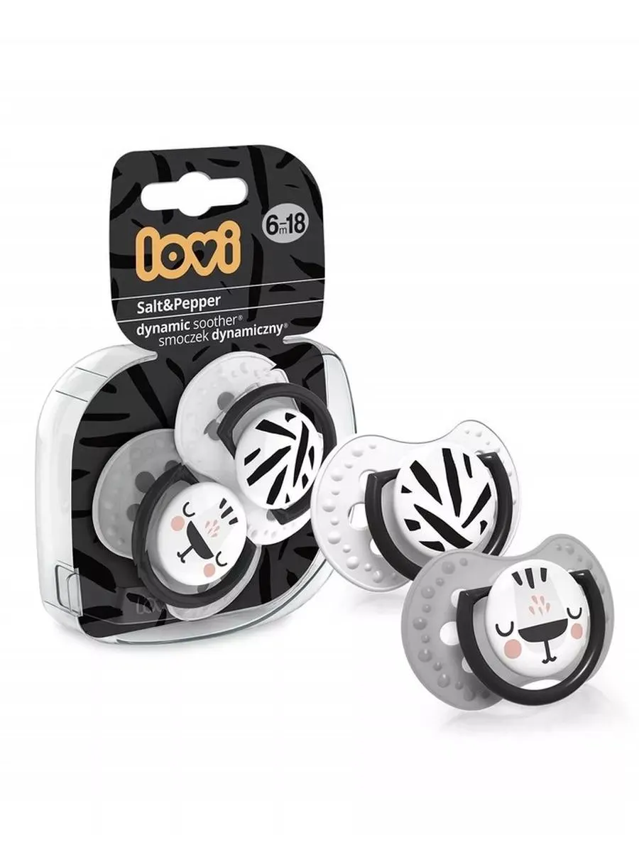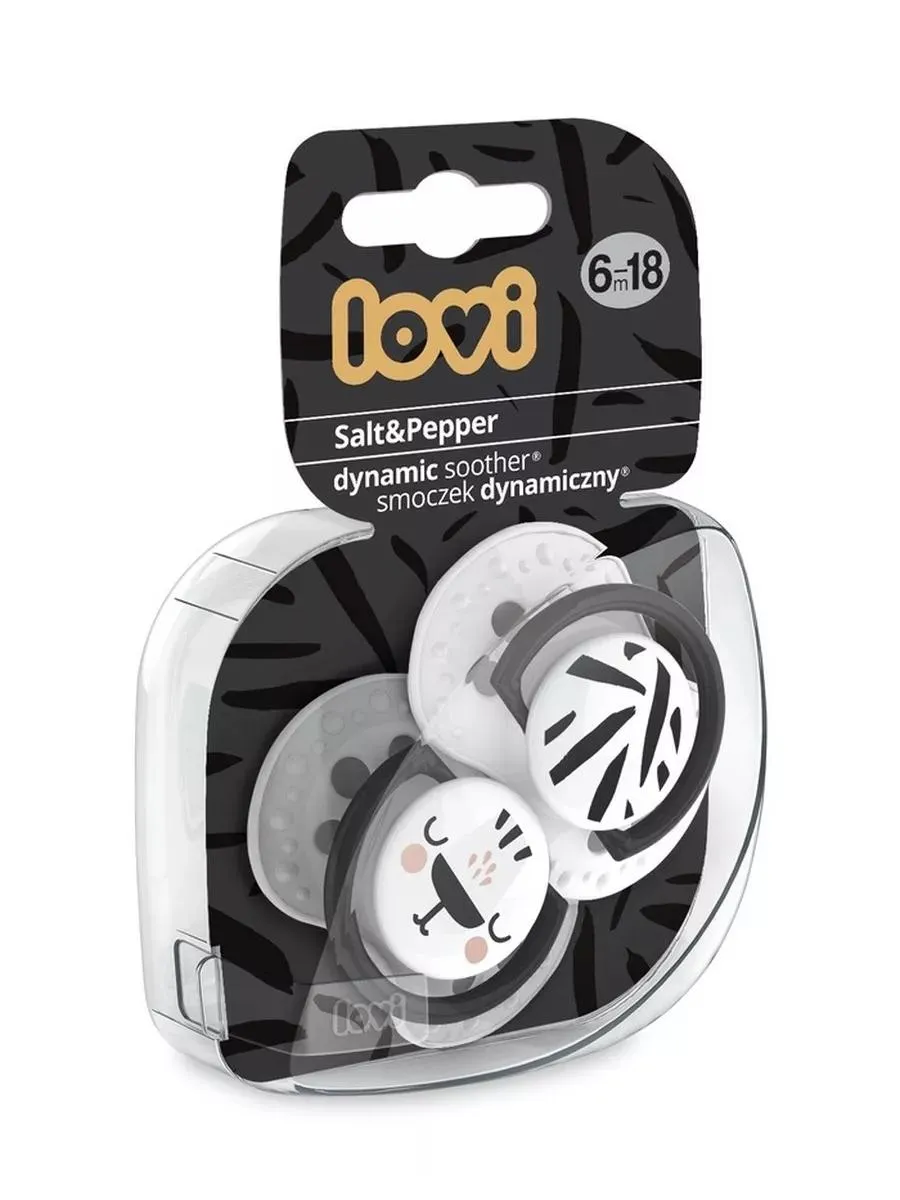 1 / 10Силиконовая пустышка Lovi коллекции Salt&Pepper с уникальным дизайном и симметричной формой, которая не нарушает сосательный рефлекс и способствует естественному развитию речи и прикуса.