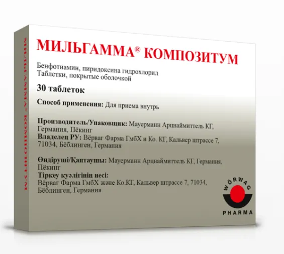 1 / 2Мильгамма Композитум - комбинированный витаминный препарат в форме таблеток, покрытых оболочкой, содержащий витамины группы В (В1, В6 и В12) для поддержки обмена веществ и здоровья нервной системы. Упаковка содержит 30 таблеток.