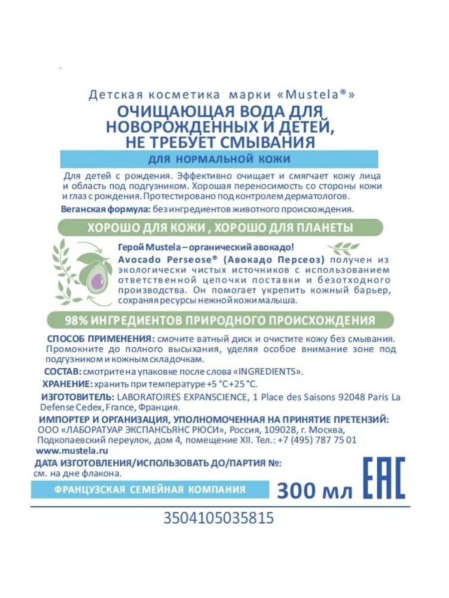 1 / 4Мягкая очищающая вода для новорождённых и детей с рождения, 300 мл. Тщательно очищает кожу и смягчает её, оставляя приятный аромат.
