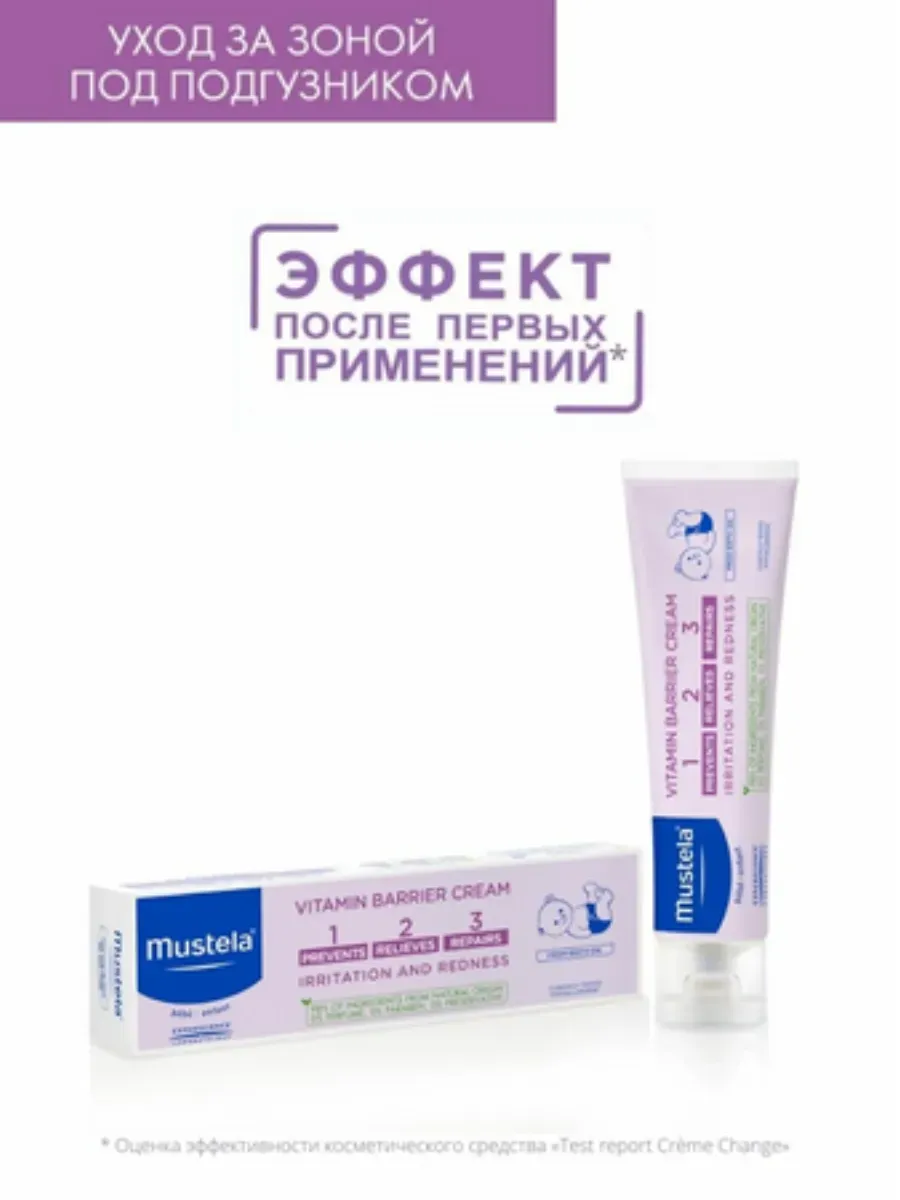 1 / 9Крем под подгузник 1 2 3 от Mustela® предназначен для защиты кожи новорождённых от раздражений и покраснений в области под подгузником. Формула безопасна для использования с первого дня жизни и минимизирует риск аллергических реакций.