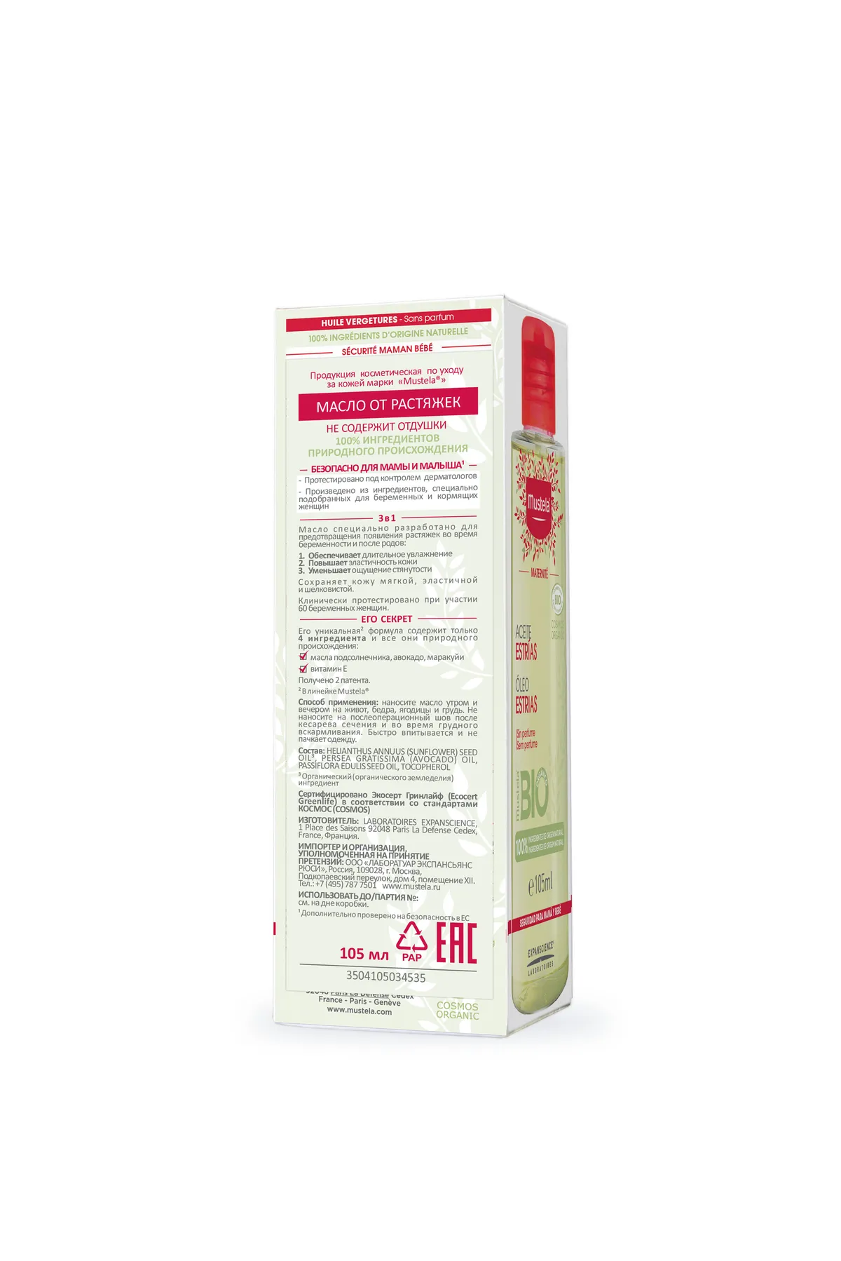 1 / 4Масло от растяжек, сертифицированное как органическое, содержит 100% ингредиентов натурального происхождения, помогает сократить появление растяжек, увлажняя кожу и уменьшая ощущение дискомфорта.