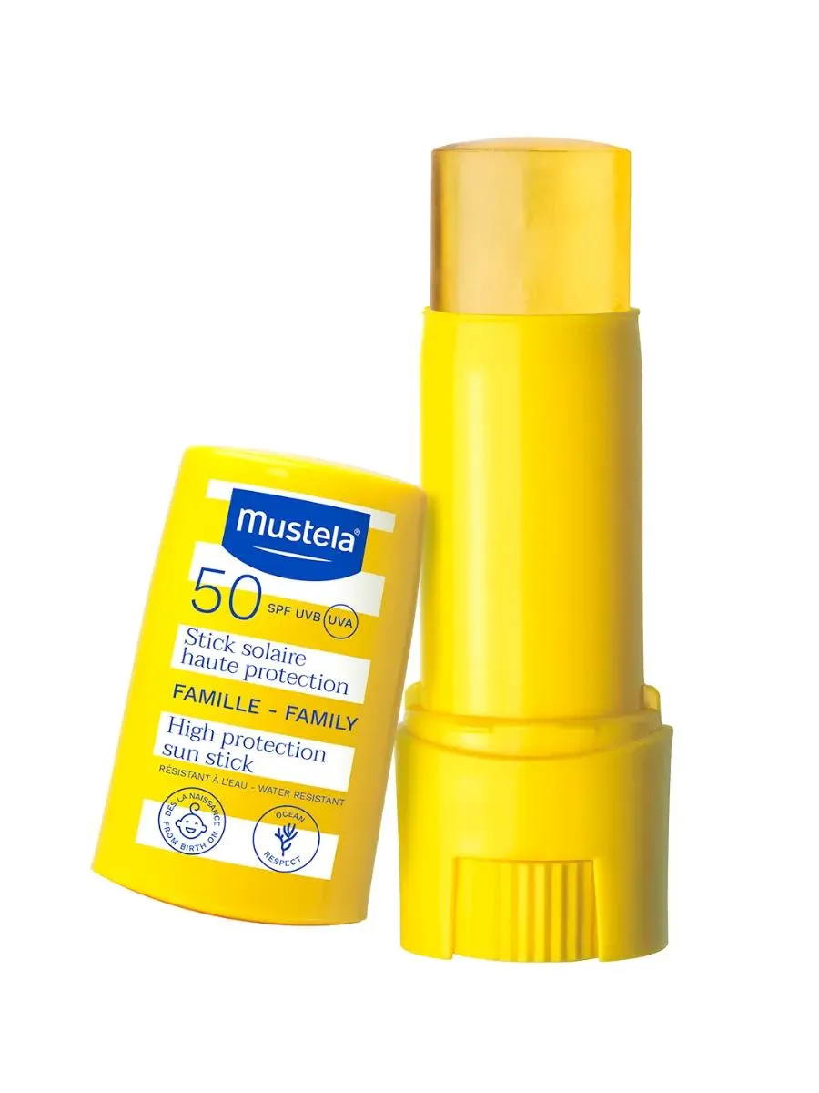 1 / 3Солнцезащитный стик Mustela High Protection Sun Stick SPF 50+ защищает отдельные участки тела и лица от UVB- и UVA-лучей. Подходит для всей семьи с рождения, включая детей, покидающих отделение неонатологии.