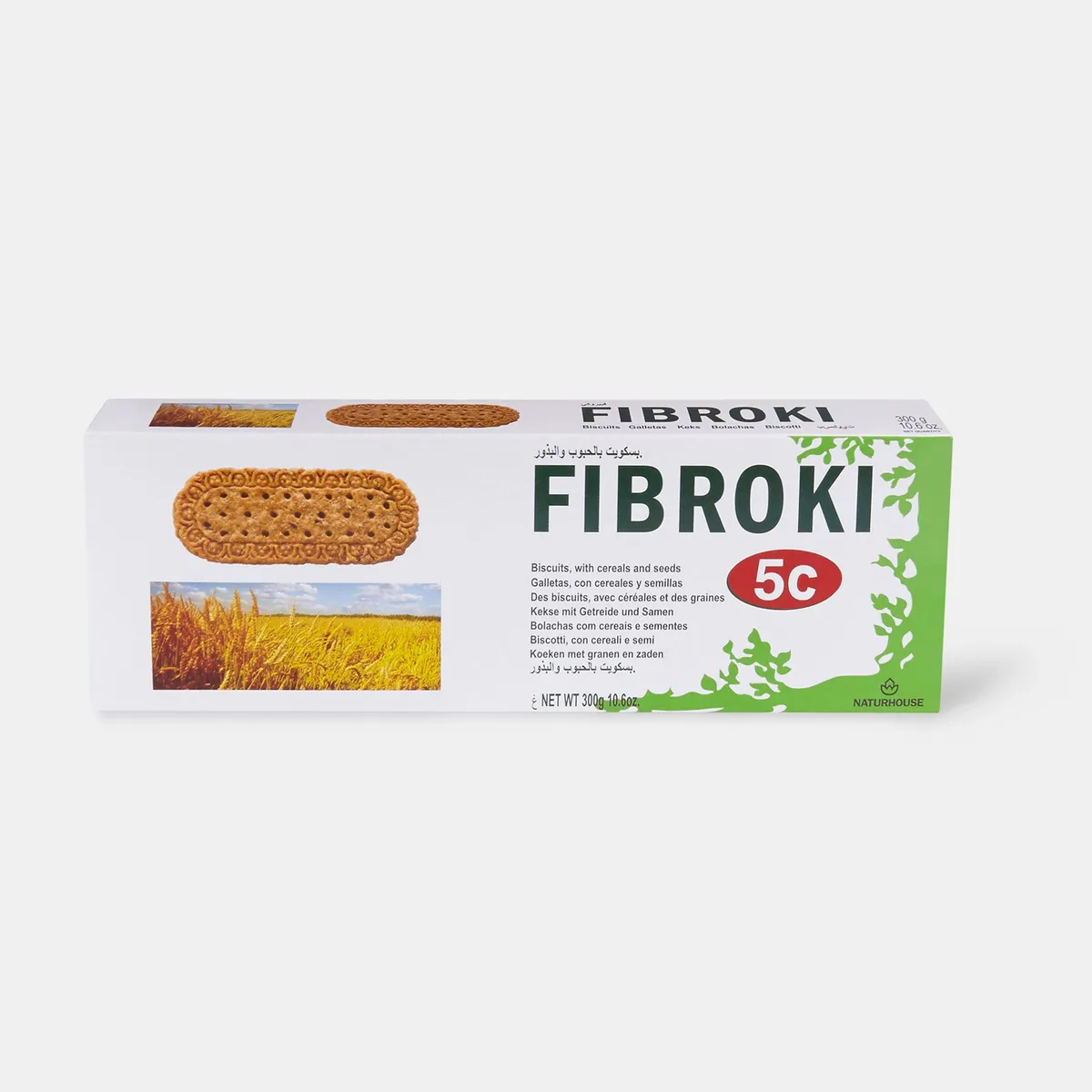 Хрустящее печенье Naturhouse Фиброки из 5 злаков с высоким содержанием клетчатки и низкой калорийностью, идеально подходит для здорового перекуса.