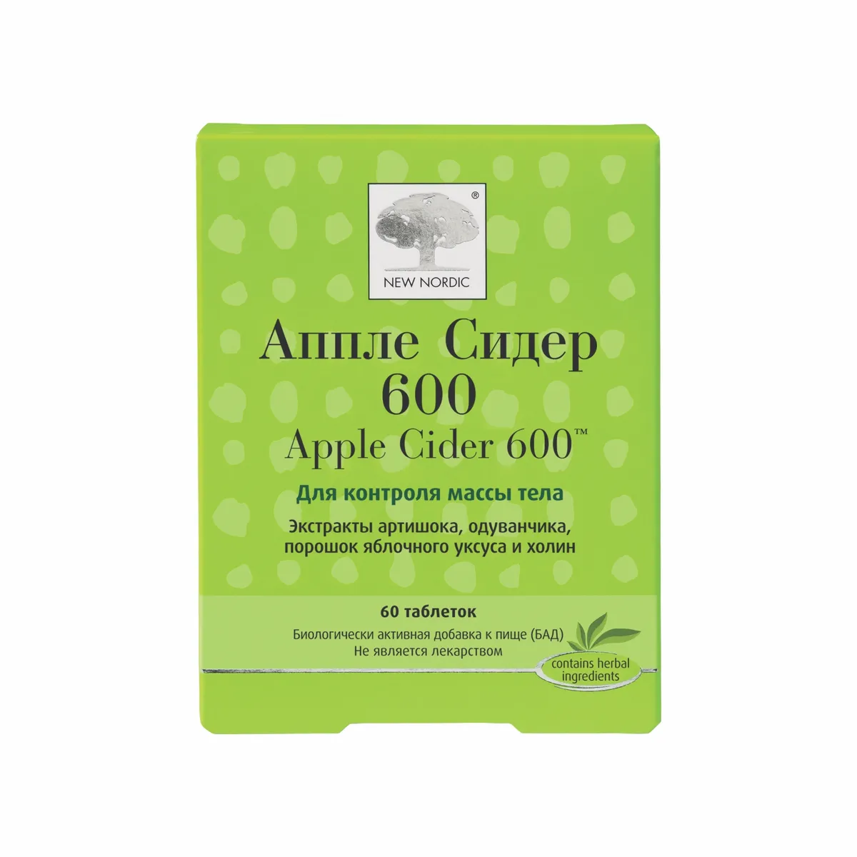 1 / 5New Nordic АпплСидер 600 Высоконцентрированный яблочный уксус с экстрактом артишока и одуванчика 950 мг таблетки 60 штук