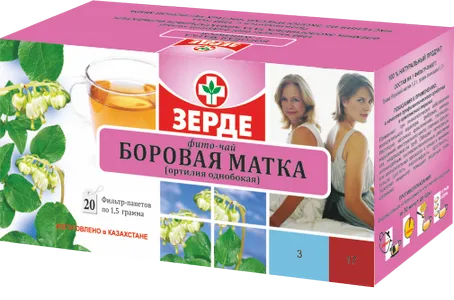 Фито-чай с травой боровой матки (ортилия однобокая) для поддержки женского здоровья. Упаковка содержит 20 пакетиков по 1,5 г.