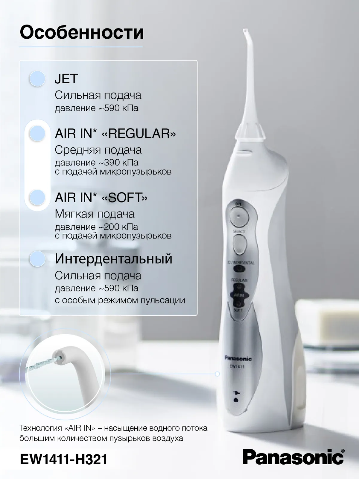 Ирригатор Panasonic EW1411H321 - Удаляет налёт в чувствительных зубодесневых карманах