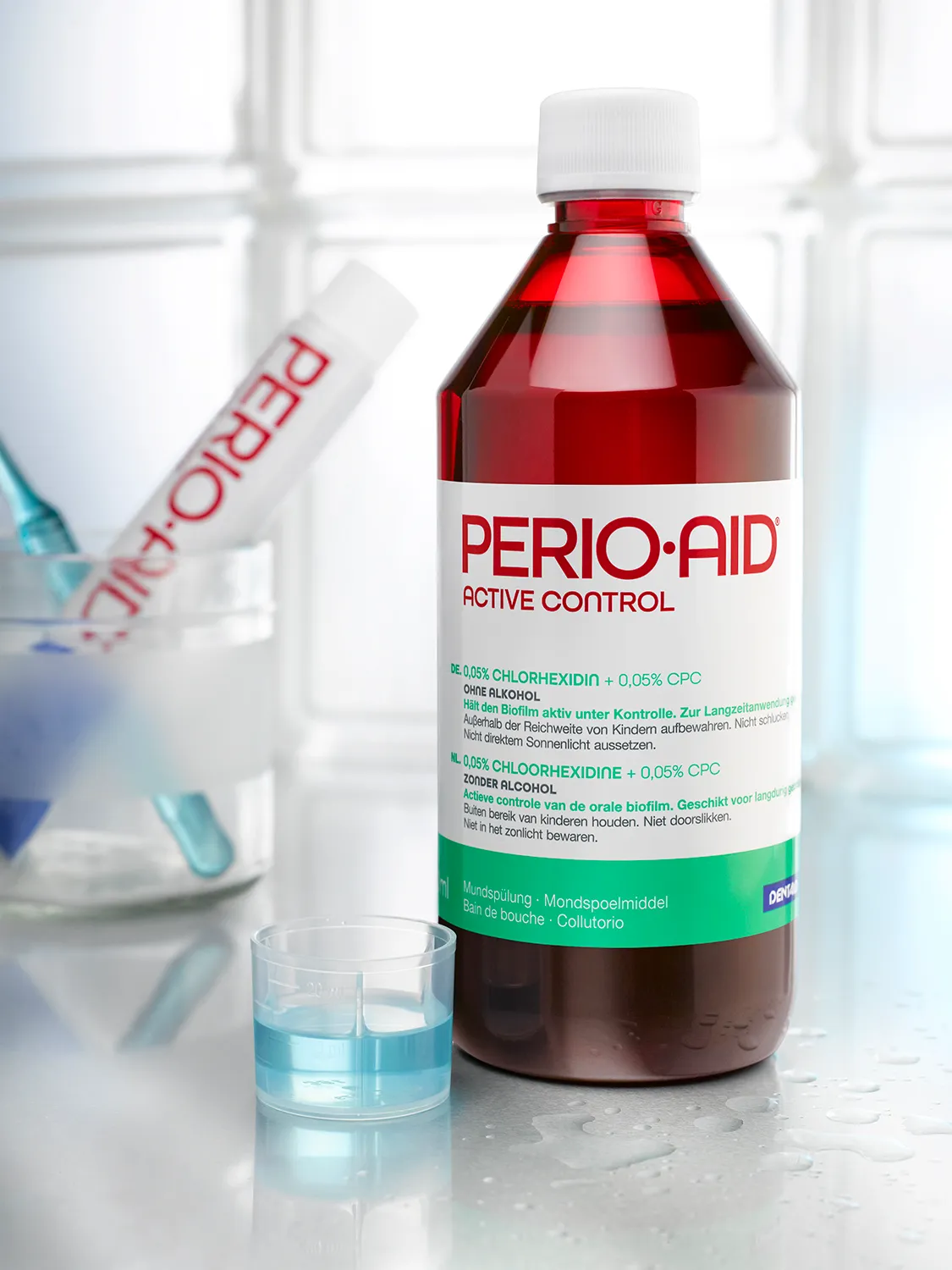 1 / 4Ополаскиватель для полости рта Perioaid Active Control с хлоргексидина биглюконатом 0,05% и цетилпиридиния хлоридом 0,05%. Обеспечивает антисептическое действие на 8-9 часов, антигингивитное действие и лечение грибковых заболеваний.