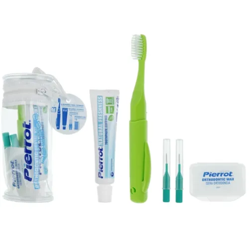 Компактный и функциональный ортодонтический набор для ухода за брекет-системами и поддержания гигиены полости рта. Включает складную зубную щётку и зубную пасту.