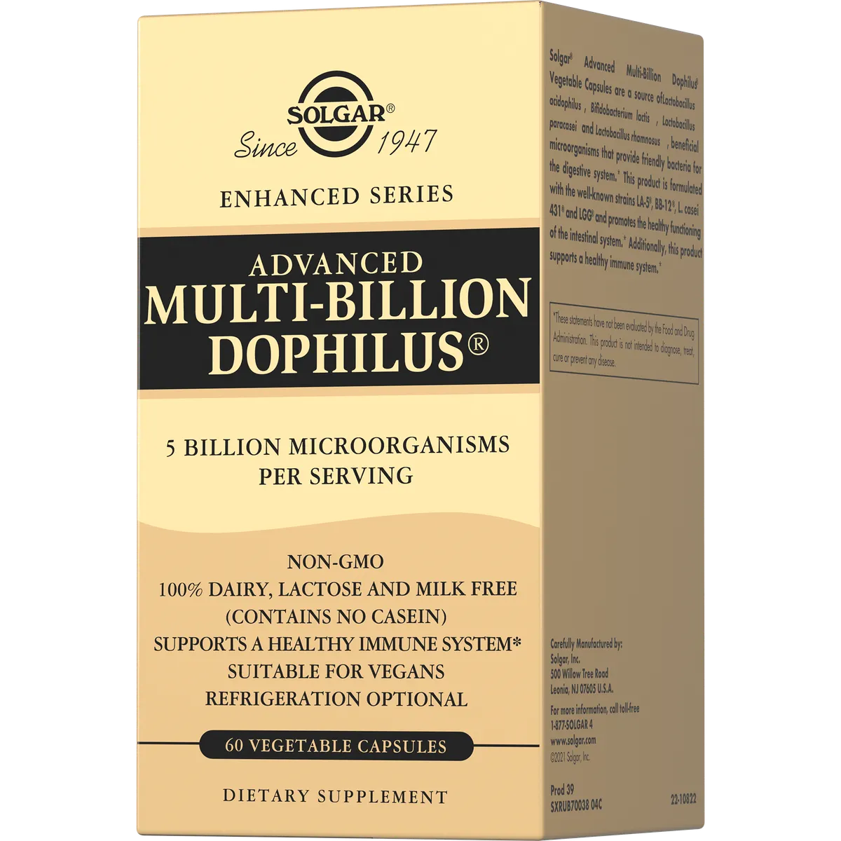 Solgar производит высокоэффективные штаммы пробиотиков действующих на всем протяжении кишечника, которые генетически протестированы и абсолютно безопасны, уникальные технологии производства из высокопотенциальных продуктов обеспечивают их эффективность и гипоаллергенность
