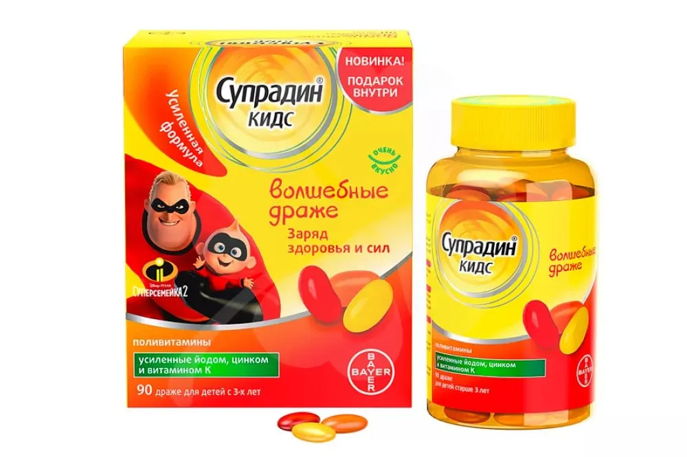 Супрадин Кидс Волшебные драже способствуют повышению выносливости благодаря усиленному содержанию биотина, витаминов Е и К, которые укрепляют мышцы и кости ребенка.
