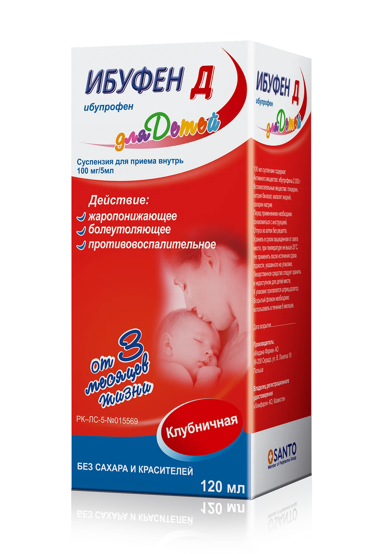 1 / 2Ибуфен — противовоспалительное средство в форме суспензии для приема внутрь, дозировка 100 мг/5 мл, объем 120 мл. Применяется для снижения температуры и облегчения болевого синдрома.