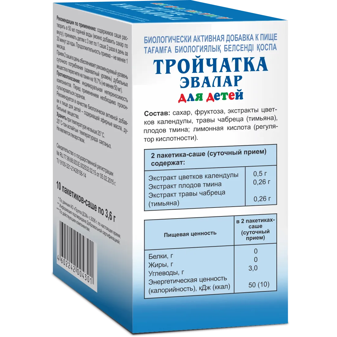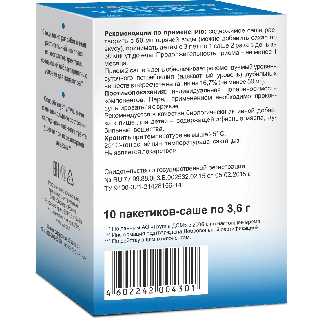 1 / 4Тройчатка-Эвалар для детей содержит 100% натуральный состав, способствует поддержанию нормального функционирования желудочно-кишечного тракта и выведению паразитов из организма. Рекомендуется для детей с 3-х лет.