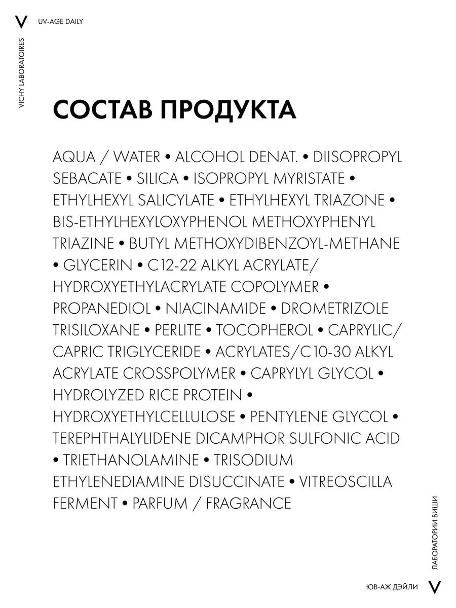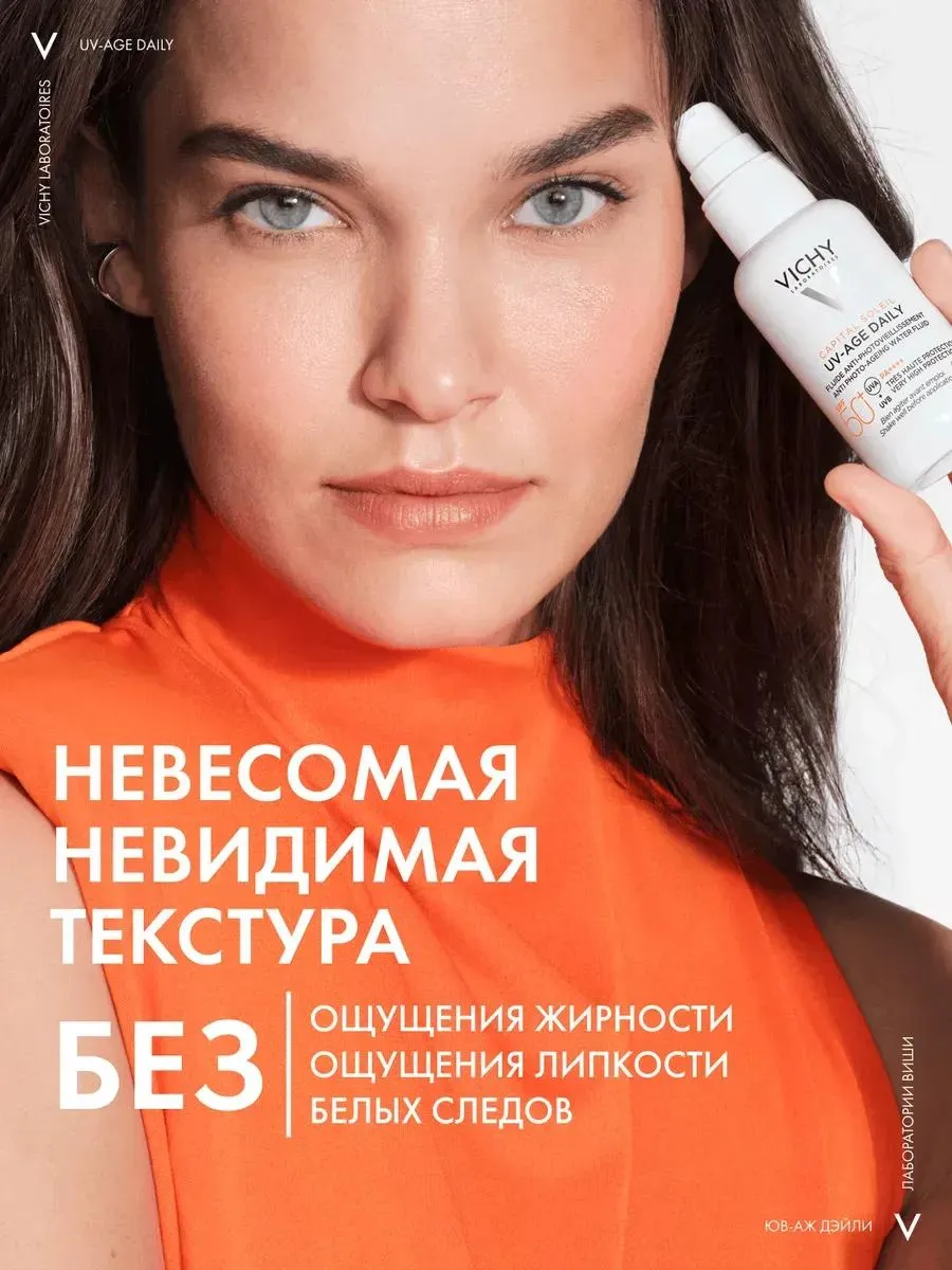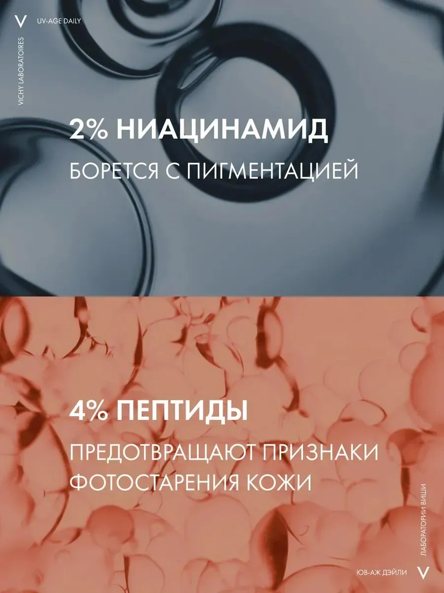 Формула, усиленная вулканической термальной водой VICHY, пробиотической фракцией, пептидом и ниацинамидом в составе, защищает от признаков фотостарения кожи - пигментации, преждевременных морщин и снижения эластичности кожи, вызванных воздействием UV-лучей. Обеспечивает антиоксидантную защиту от последствий негативного воздействия окружающей среды и инфракрасного излучения. Запатентованная технология NETLOCK создает на поверхности кожи невесомую и невидимую защиту. Легкая нелипкая текстура флюида не ощущается на коже и устойчива к поту. Протестировано под дерматологическим и офтальмологическим контролем. Гипоаллергенно. Подходит для чувствительной кожи.