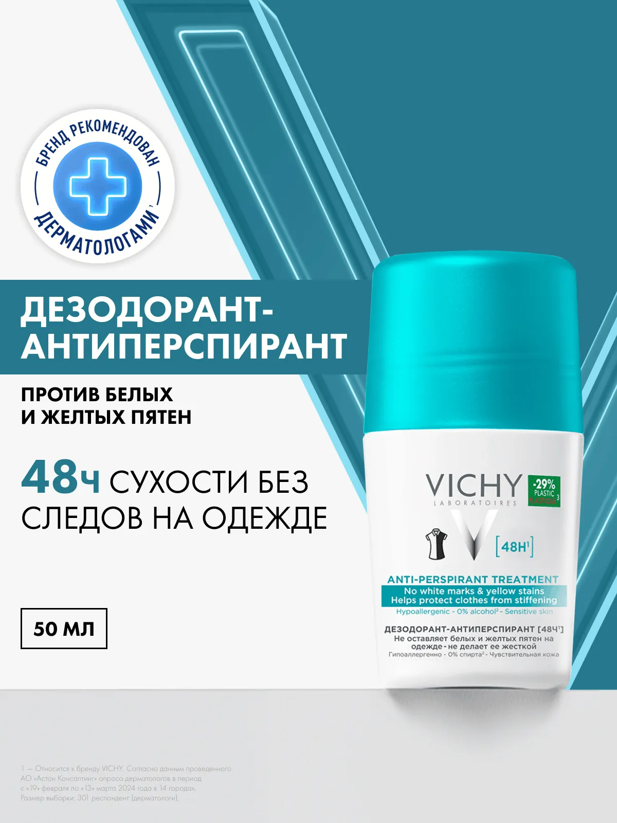 1 / 8Обеспечивает надежную защиту от пота и запаха на протяжении 48 часов.