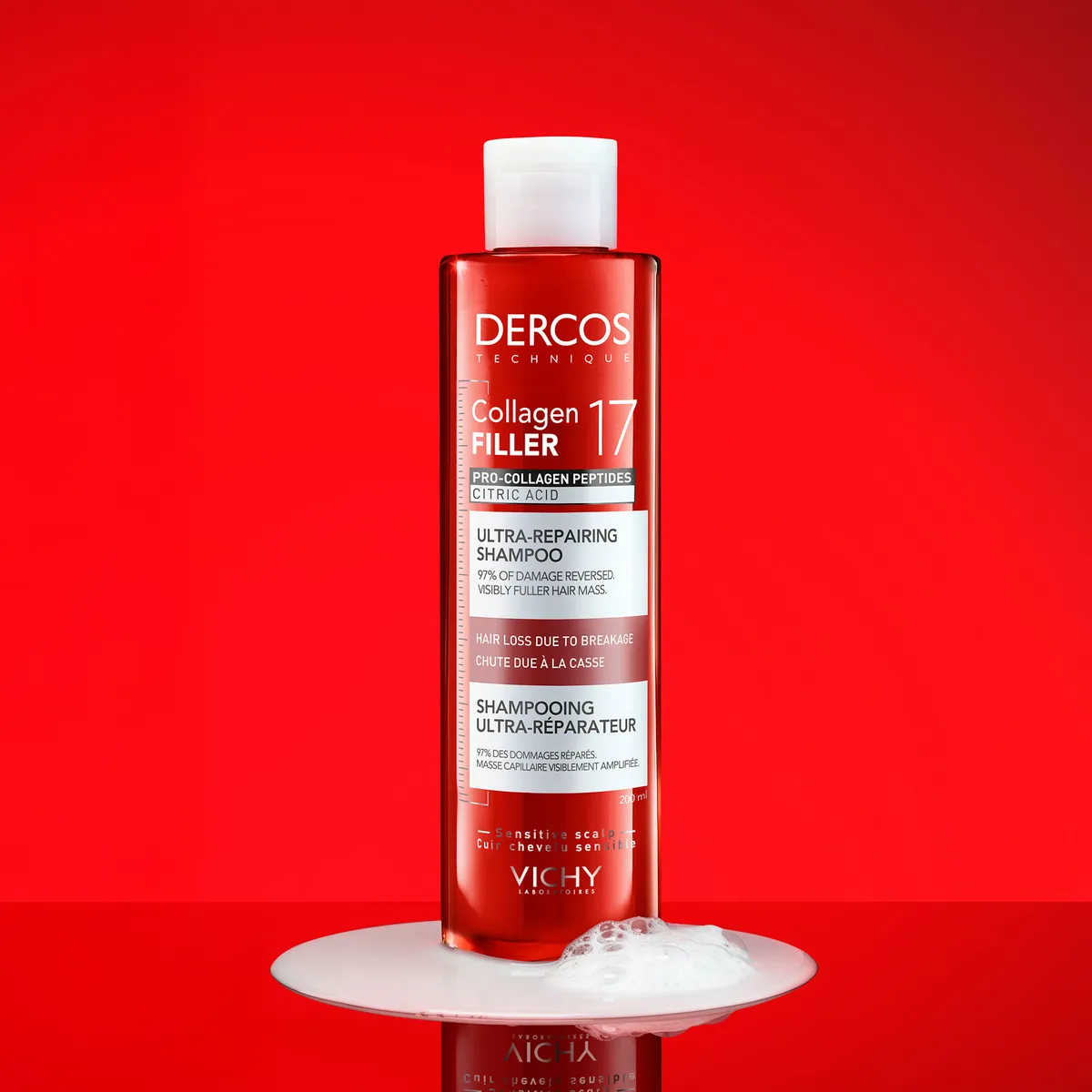 1 / 3Шампунь бережно очищает кожу головы, стимулирует выработку коллагена 17, укрепляет внутреннюю структуру волос и помогает предотвратить их выпадение. Содержит про-коллаген пептиды и лимонную кислоту для двойного восстановления кожи головы и волос.