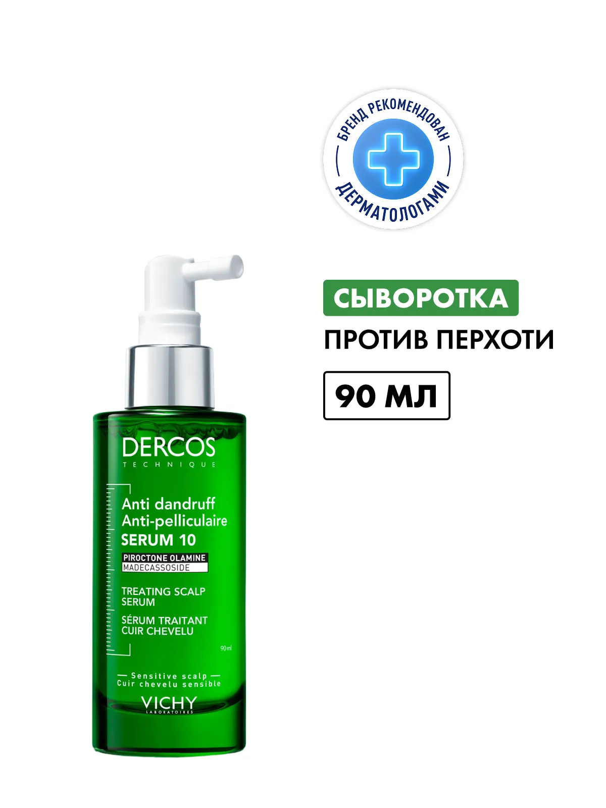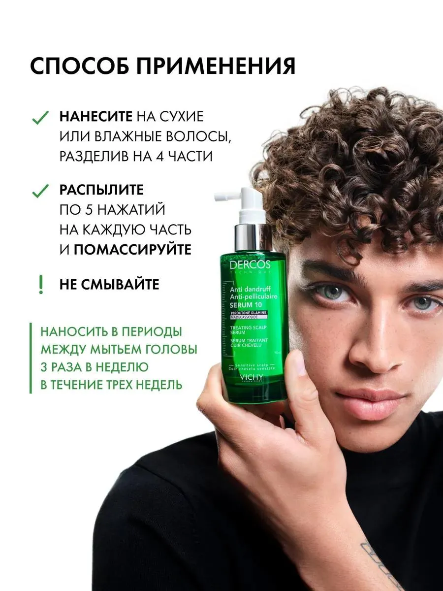 Интенсивная сыворотка VICHY DERCOS ANTI-DANDRUFF SERUM действует на 10 проблем кожи головы, которые могут быть связаны с перхотью.
