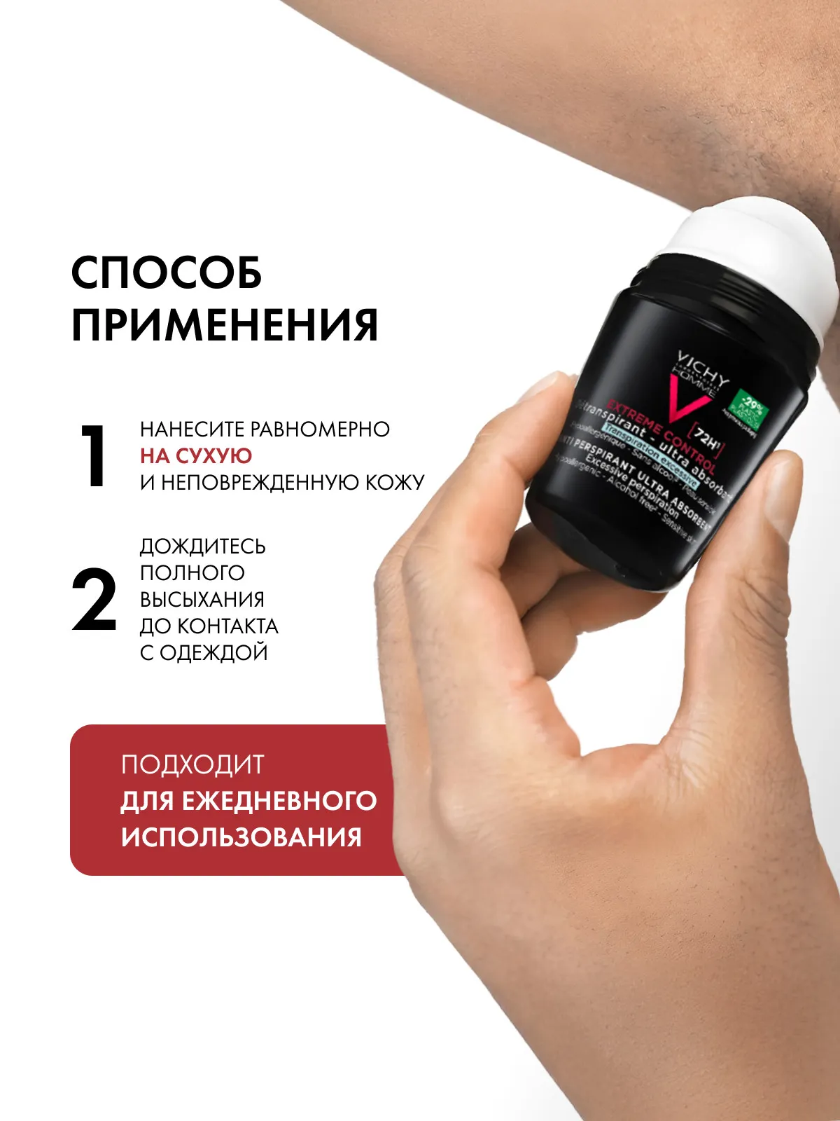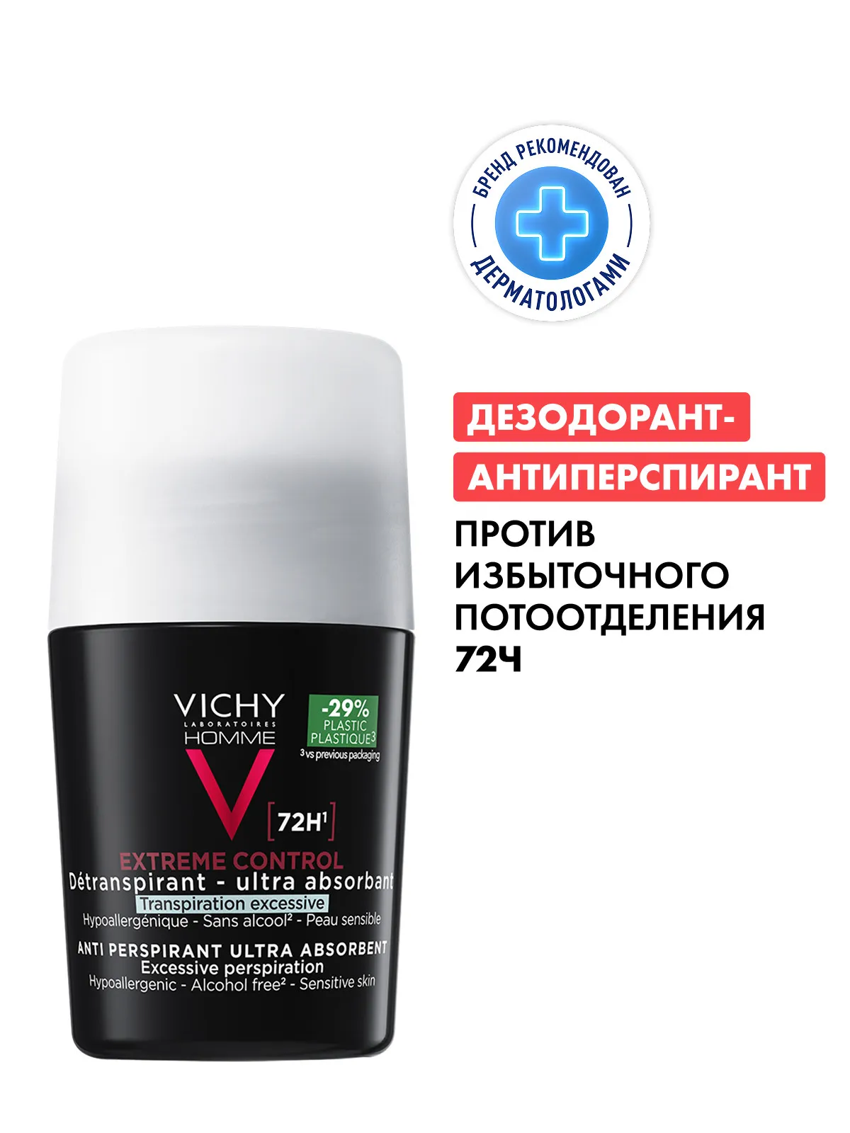 1 / 8Гипоаллергенный дезодорант-антиперспирант Vichy Homme обеспечивает защиту от потоотделения на 72 часа и подходит для всех типов кожи.