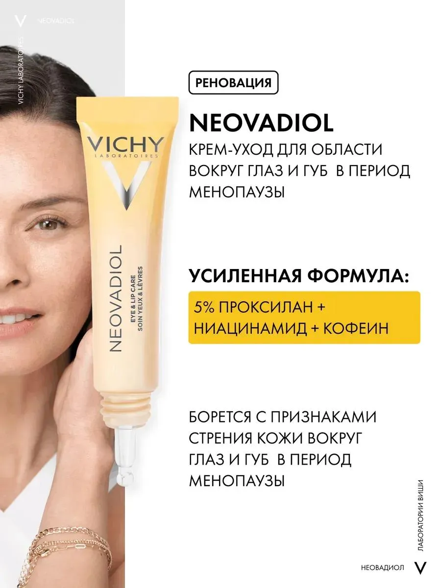1 / 10Крем-уход с клинически доказанной эффективностью в борьбе с признаками менопаузального старения кожи вокруг глаз и губ.