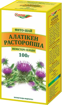 Фито-чай с плодами расторопши. Содержит флавоноиды, флавонолигнаны, алкалоиды, сапонины, витамин К и другие полезные вещества. Обладает гепатозащитными свойствами.