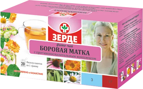 Фито-чай с травой боровой матки и противовоспалительным комплексом. Состав: боровая матка, эхинацея, липа, ромашка, календула, эвкалипт. Объем: 1 г, количество: 20 пакетов.