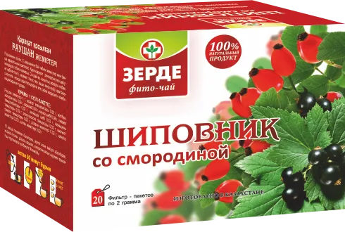 Фито-чай с плодами шиповника и листьями смородины. Состав: плоды шиповника, листья смородины, листья мяты, каркаде, трава мелиссы, корневища левзеи, трава эхинацеи, корни женьшеня, корни элеутерококка, корни родиолы розовой, плоды боярышника, плоды рябины, плоды калины.
